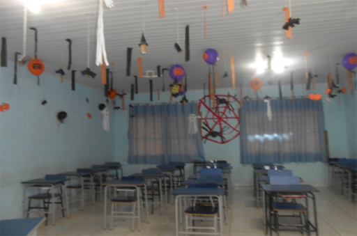 A sala de aula foi toda decorada com símbolos e elementos que fazem parte do Dia de Halloween e ao final, distribuíram doces para os visitantes.