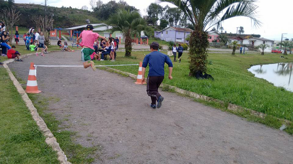 Na pista no entorno da lagoa em frente ao Ginásio Municipal de Esportes os estudantes do 6º ano 9º ano de ambos os períodos participaram nas seguintes modalidades de atletismo: 100 m, 250 m, 1000 m, salto com barreira, revezamento 4x75 e 80 metros com barreira. Com essa atividade os professores Francisco e Marilei conheceram mais sobre as habilidades dos alunos, e fizeram uma seleção de atletas que em breve estarão participando dos Jogos Escolares de Santa Catarina (JESC) em São Miguel do Oeste.