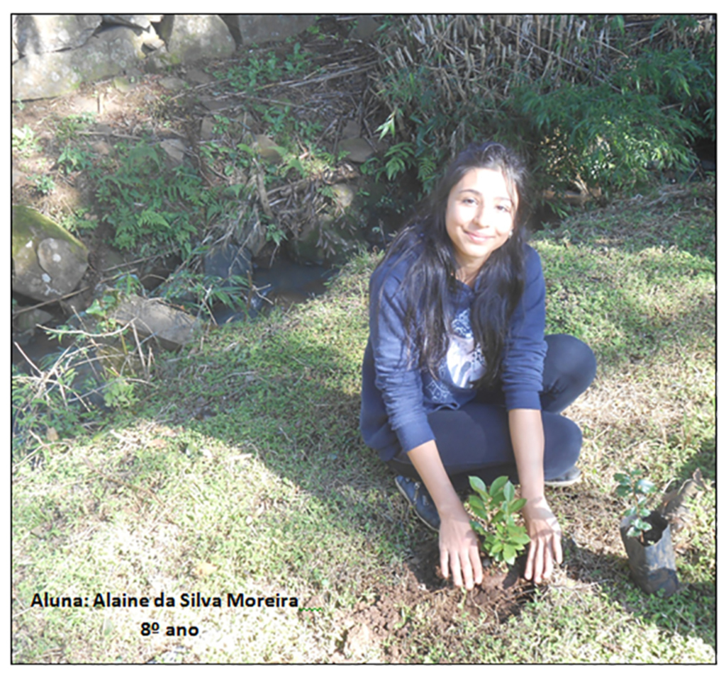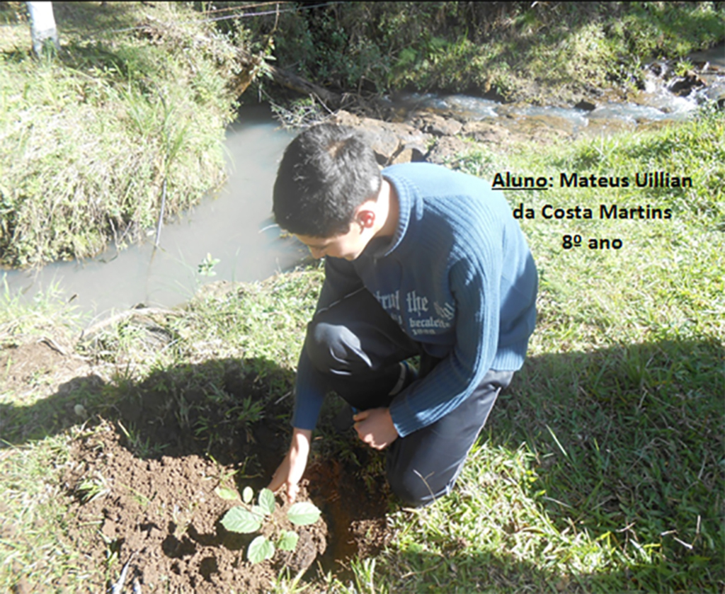 Os alunos tiveram aula teórica com destaque para a importância da mata ciliar e, após, plantaram as margens de um riacho próximo à escola essas mudas, contribuindo para a proteção da mata ciliar.