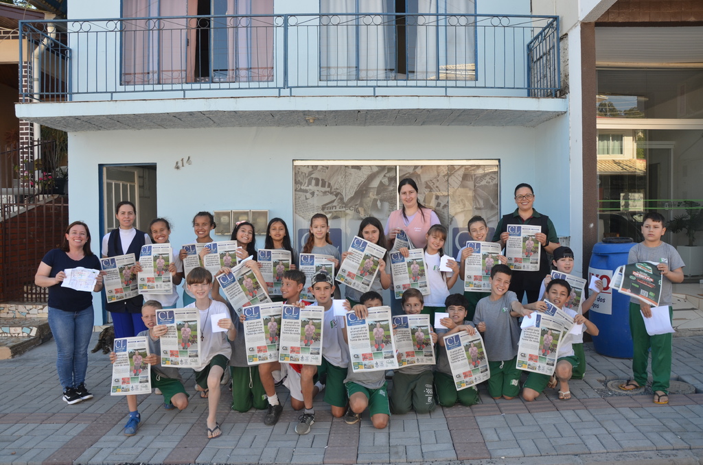 Os alunos do 4⁰ ano 1 e 4º ano 4 da Escola de Ensino Fundamental José Borges da Silva de Anita Garibaldi, visitaram a redação do Jornal Correio dos Lagos para conhecer um pouco da história do jornal.
