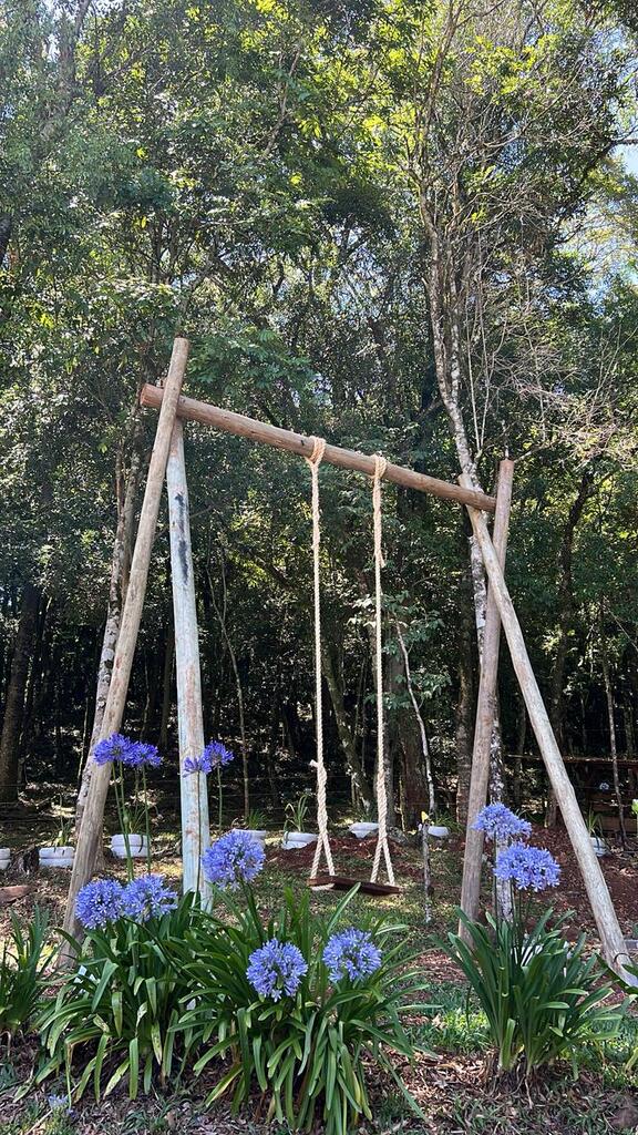 Um lugar de paz, que transmite muitas experiências durante o dia pra quem buscar contato com a natureza e aconchegante a noite no jardim iluminado com varal de luzes que encantam ainda mais o espaço.