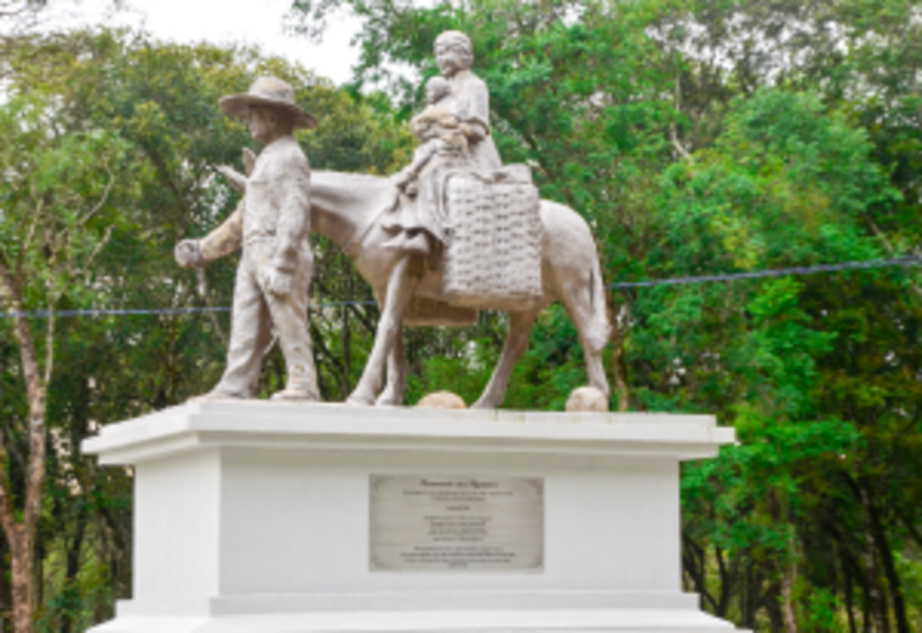 O monumento que há no local é uma homenagem aos imigrantes- as quatro primeiras famílias que vieram em 1935 morar na comunidade, que estão representadas por esta imagem que traduz exatamente a forma como eles chegaram vindos de Urussanga, a cavalo, trajeto o qual levaram 10 dias para completar, trazendo filhos, roupas e mantimentos consigo.