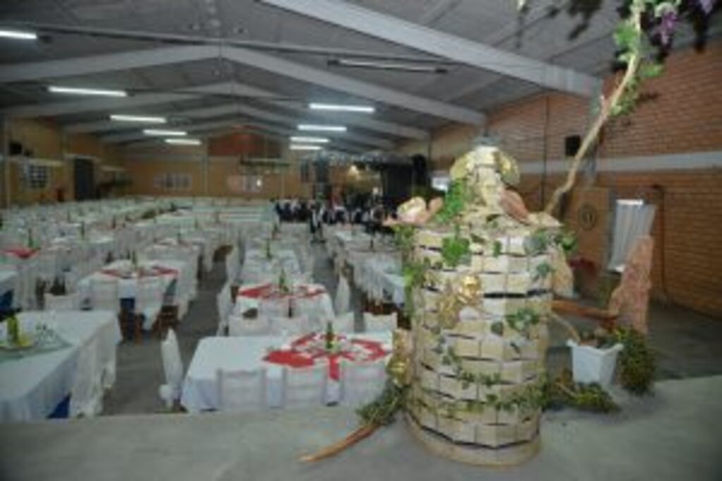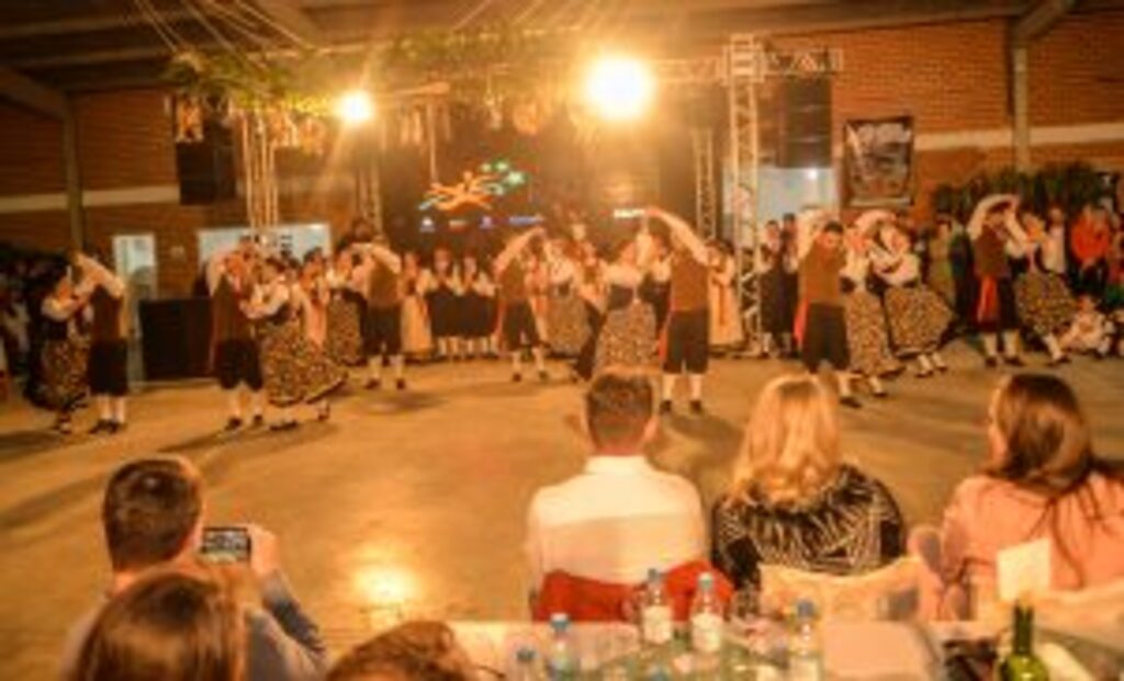Jantar com comidas típicas italiana, vinho, apresentação de danças típicas, baile e café com mistura.
