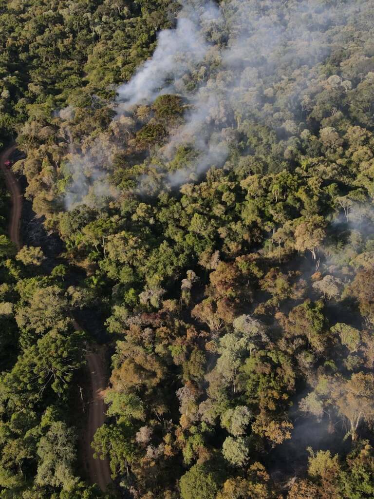 Incêndio de grandes proporções atingiu área de preservação e reflorestamento no Parque Rio Canoas