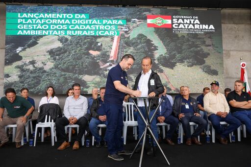 O governador de Santa Catarina, Jorginho Mello, lançou nesta terça-feira, 24, em Campos Novos, o CAR Digital, nova plataforma para gestão dos Cadastros Ambientais Rurais (CAR) no estado. A ferramenta vai reduzir cerca de 90% o tempo de análise dos cadastros. A partir de agora, os requerimentos, declarações ou cadastramentos que antes eram protocolados e analisados de forma manual, passam a ser 100% digitais e com funcionalidades que vão garantir mais transparência, agilidade nas análises, automatização de etapas, padronização dos fluxos de validação, redução do retrabalho nas análises e geração de dados completos.