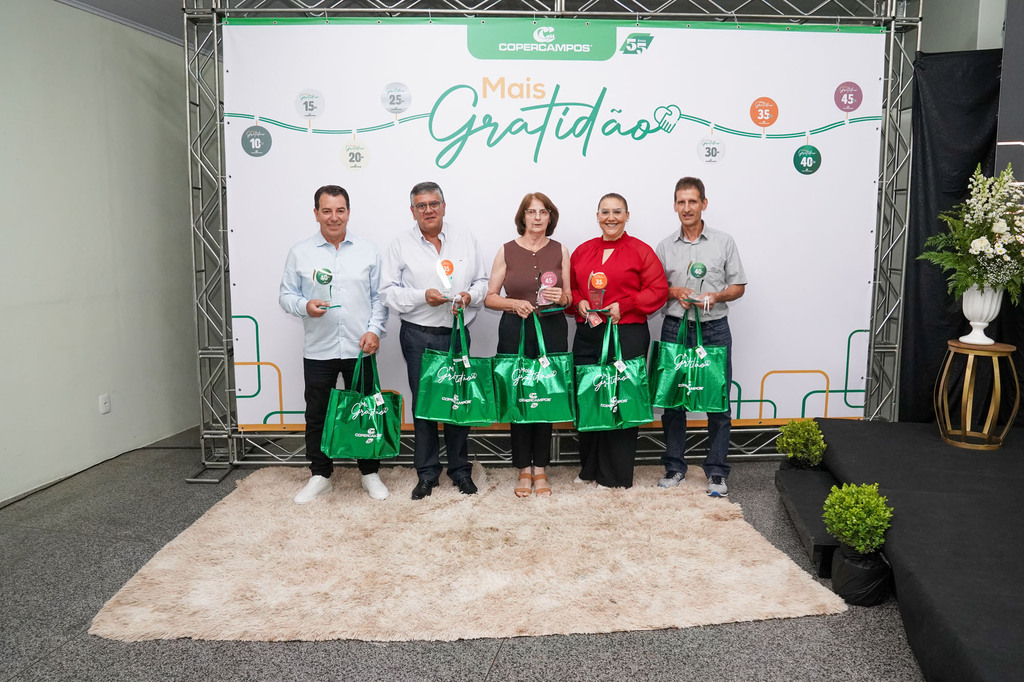 “Hoje celebramos não apenas os anos de colaboração, mas sobretudo a história, a memória e o legado que cada um de vocês representa para a Copercampos. O programa ‘Mais Gratidão’ materializa o nosso compromisso com as pessoas: com quem escolheu caminhar ao nosso lado, crescer com a cooperativa e fazer parte da construção de algo maior. Valorizar o tempo de serviço é reconhecer que cada jornada, cada dia de trabalho, cada desafio enfrentado e superado, compõe uma parte vital da nossa história. Parabéns a todos os homenageados — o futuro da Copercampos se sustenta sobre os alicerces de sua dedicação”, ressalta Cláudio Hartmann, Diretor Vice-presidente da Copercampos.