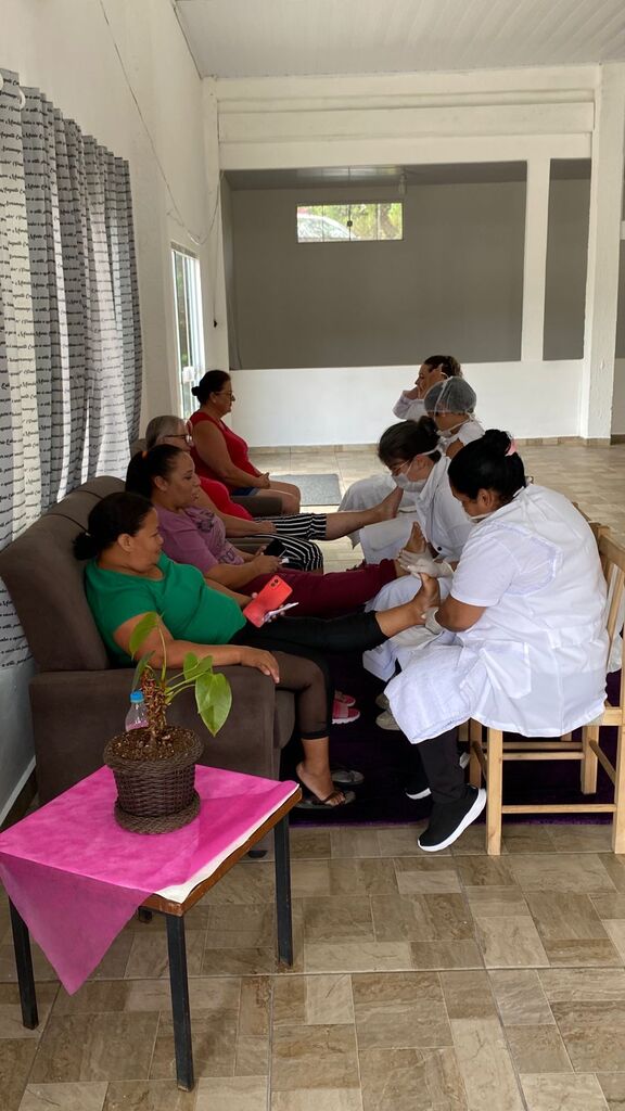 Durante a tarde, as mulheres participaram de uma palestra sobre autoestima e puderam desfrutar de uma relaxante massagem nos pés, preparada com carinho pela equipe do CRAS, tornando o encontro ainda mais acolhedor e significativo.