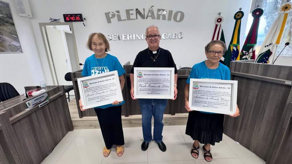 Na oportunidade o Padre Paulo, Pároco da Paróquia Nossa Senhora da Saúde, também recebeu o título de Cidadão Abdonese.