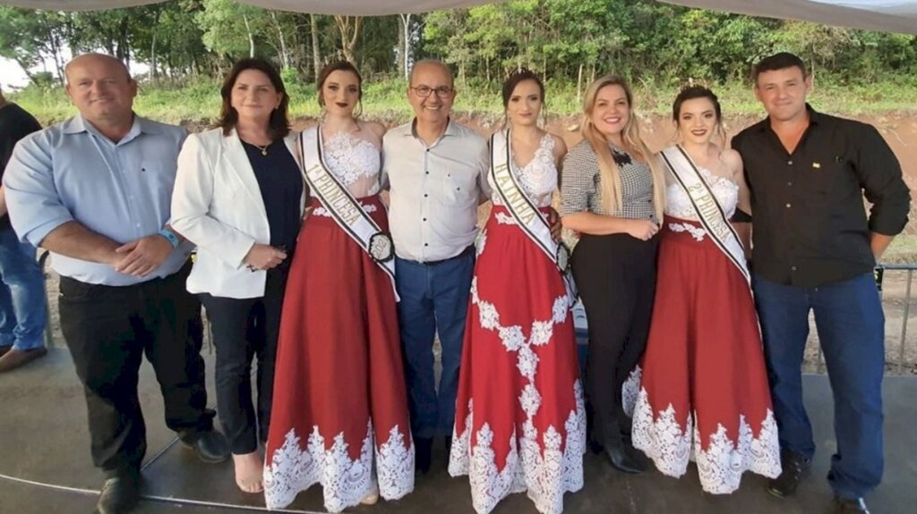 Prefeitos Zinho Grassi e Dile no aniversário de Vargem com a prefeita Milena, deputada Carmen e o pré-candidato a governador, Jorginho Melo