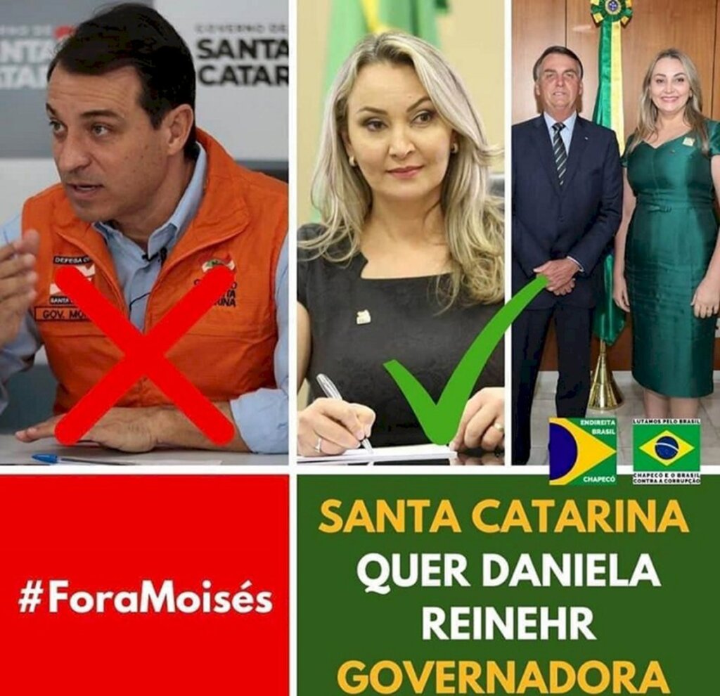 Aliados de Daniela Reinehr compartilham esse tipo de material defendendo que ela fique em definitivo como governadora de SC