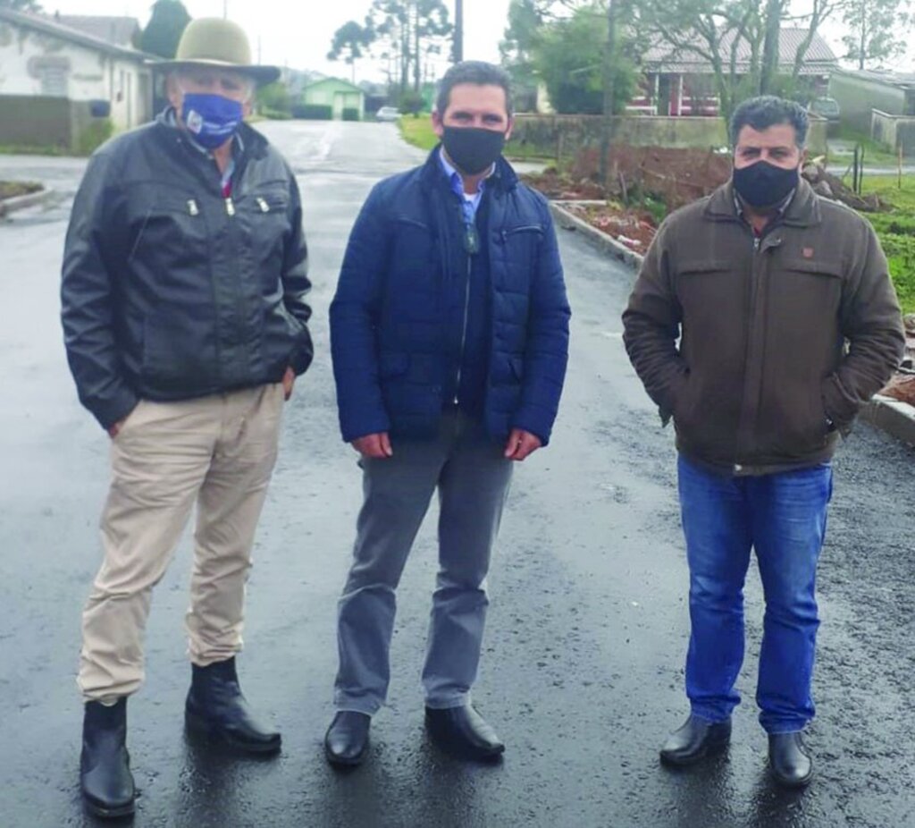 Nesta semana Juarez Mattos foi conferir pavimentação em Capão Alto com recurso de emenda do deputado Coruja e, no registro, entre ele aqueles que podem se digladiar nas urnas, o atual prefeito Tito e o vice Zezo