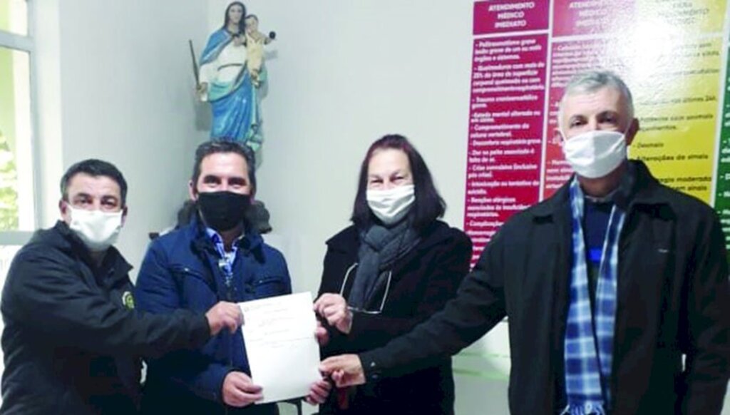 Representante do Hospital de Campo Belo com o vereador Formiga, Juarez Mattos e Dauri Fernandes na entrega da confirmação da emenda de R$ 100 mil