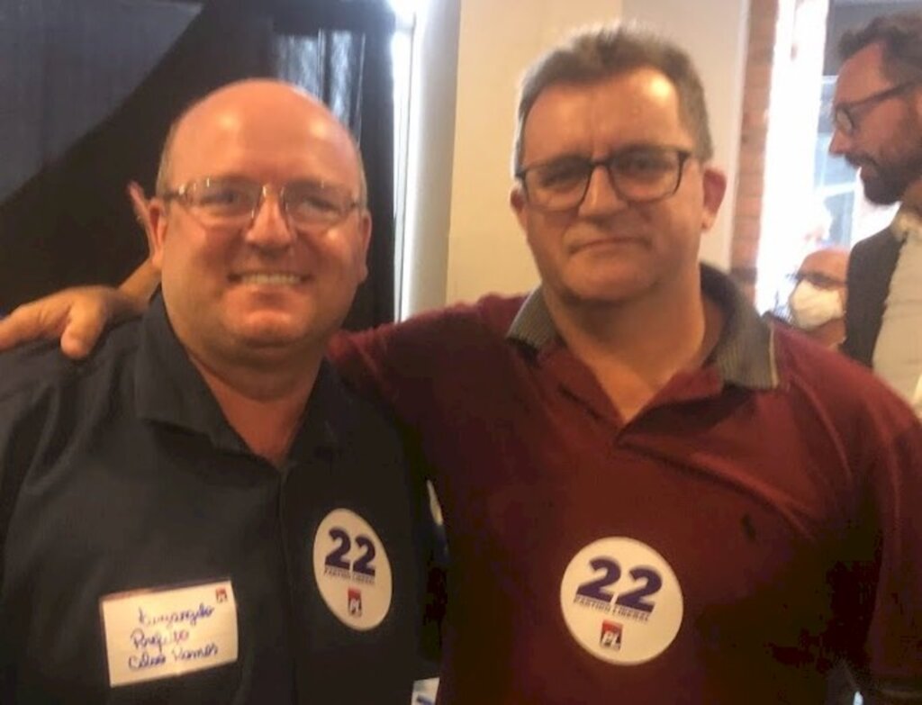 Prefeito Zinho e o vereador Claudiomiro, os dois eleitos pelo PL em Celso Ramos no pleito de 2020