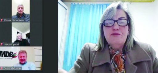 Rosane, a pré-candidata do MDB em Anita, participou da conversa com o presidente Maldaner