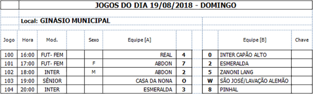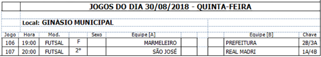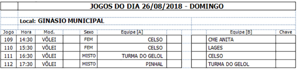 *O jogo do dia 23/08 foi transferido para o dia 30/08 devido a Olesc ser em Anita.