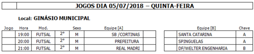 Jogos do dia 01/07/2018