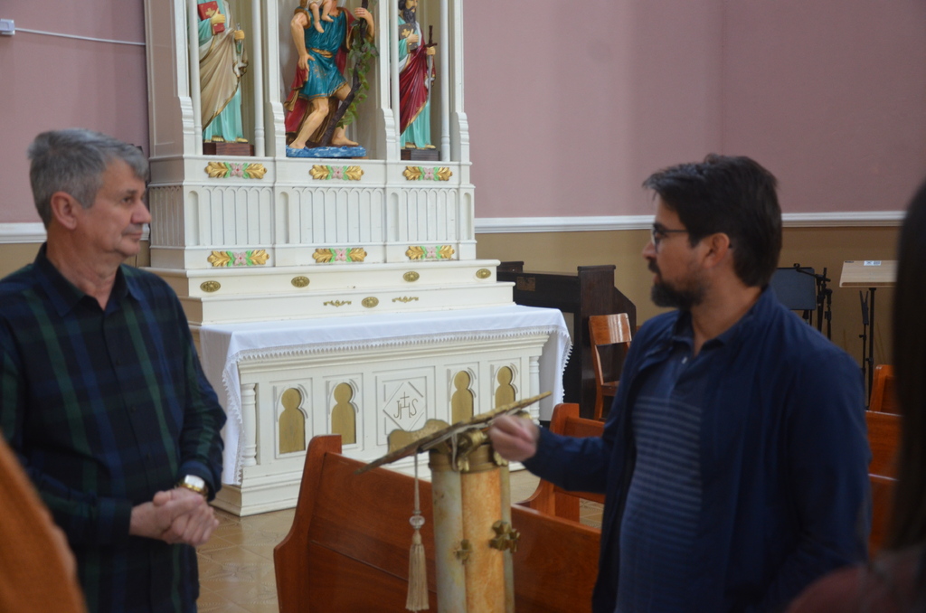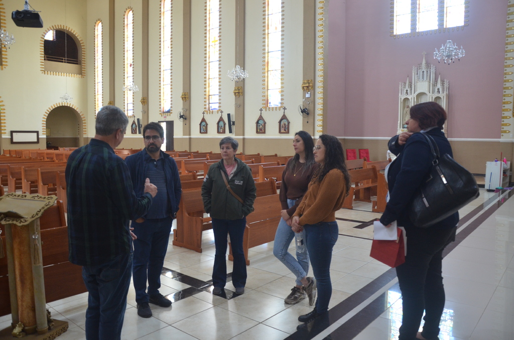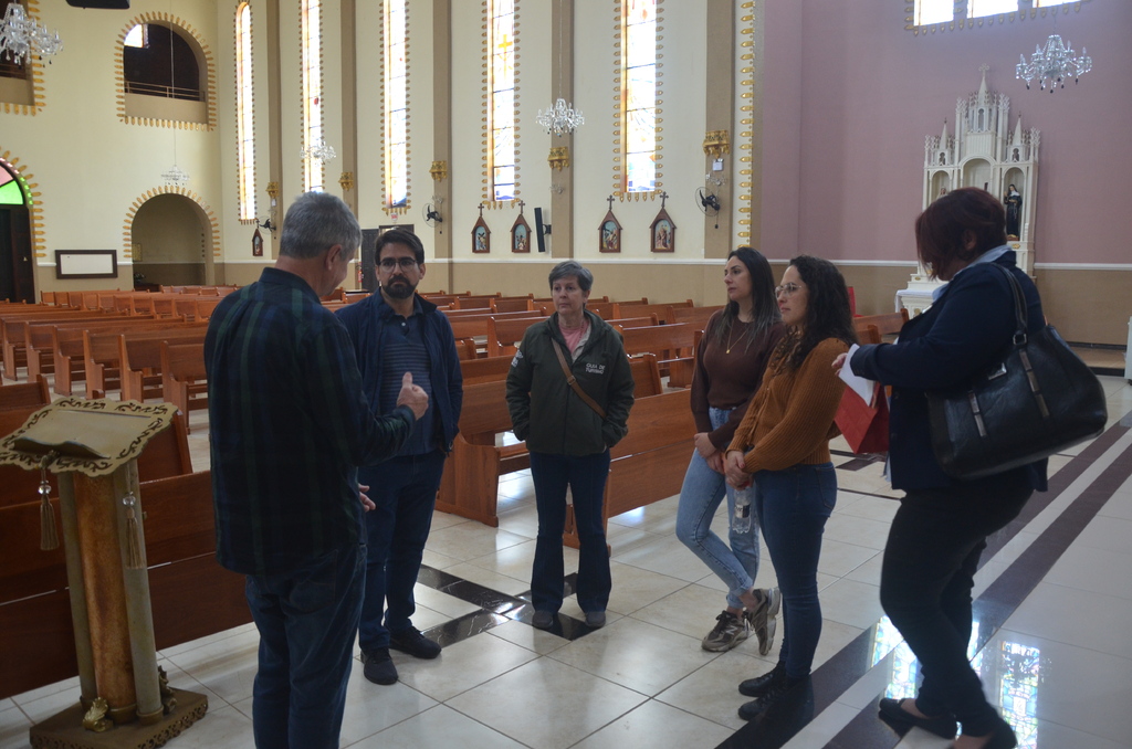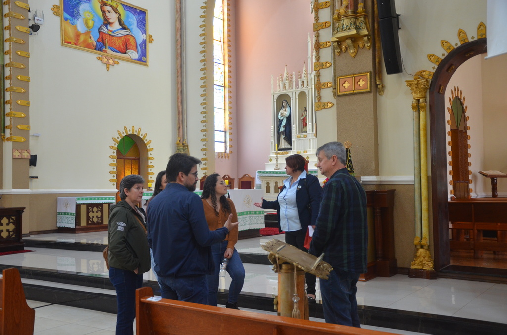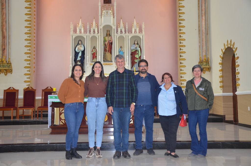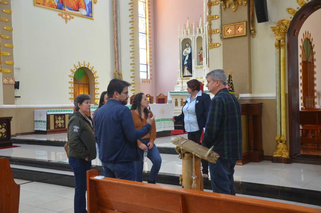 Após, o grupo visitou a Igreja Matriz Santa Bárbara e recepcionados pelo Pároco Padre Vanildo Padoin, conheceram o templo religioso e as potencialidades para desenvolver o turismo no local. Em seguida, visitaram a Gruta Nossa Senhora de Lourdes e finalizaram com uma visita técnica até o Centro Cultural Bradamante Salmória, que deverá passar por uma restauração em sua estrutura física.