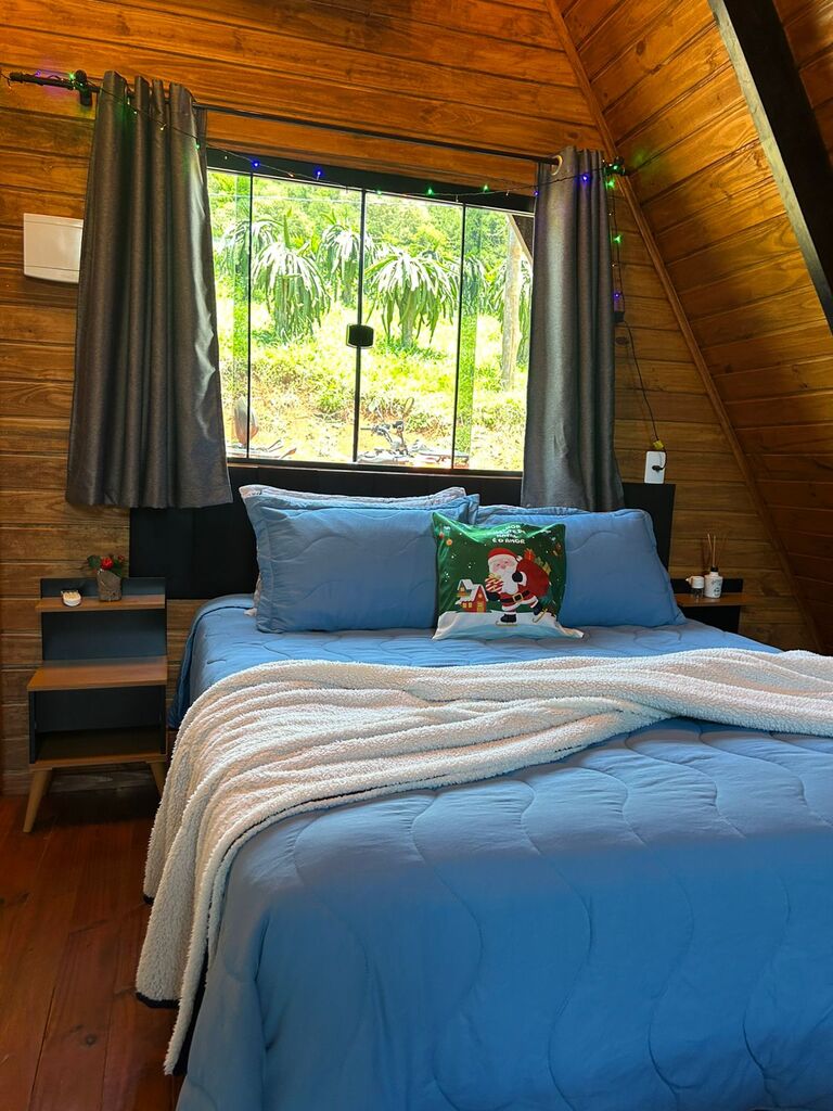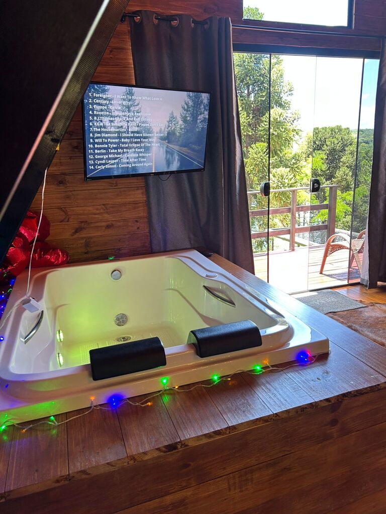 O local oferece cabana aconchegante com hidromassagem.