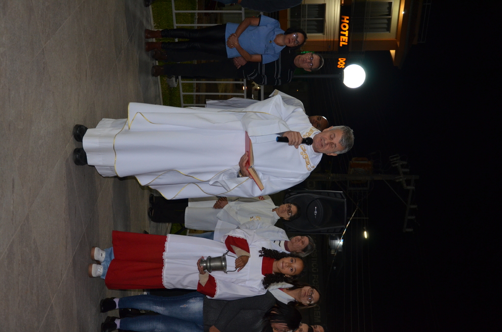 Padre Vanildo, pároco da Paróquia Santa Bárbara realizou a benção no local onde a imagem de Santa Bárbara ficará disposta, abençoando o povo.