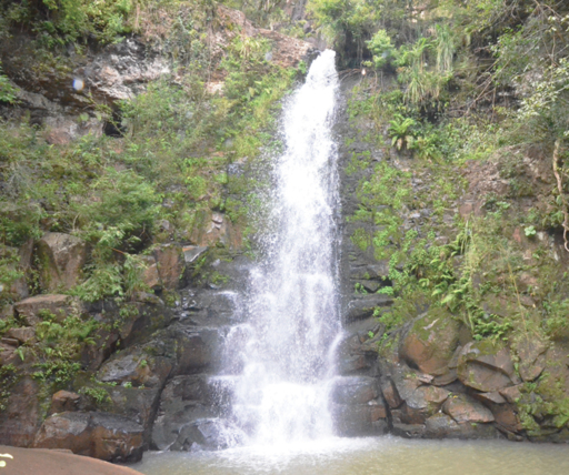 Por falar em cachoeira, a beleza do local encanta. Para chegar até a parte debaixo da cachoeira é preciso fazer uma trilha, sem muitas dificuldades e que ao final vale a pena pela beleza do local.