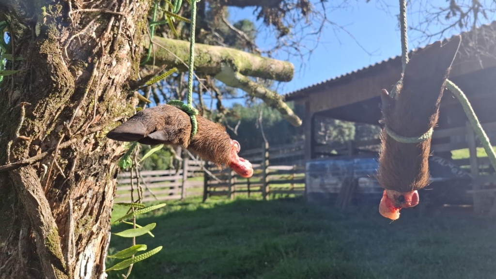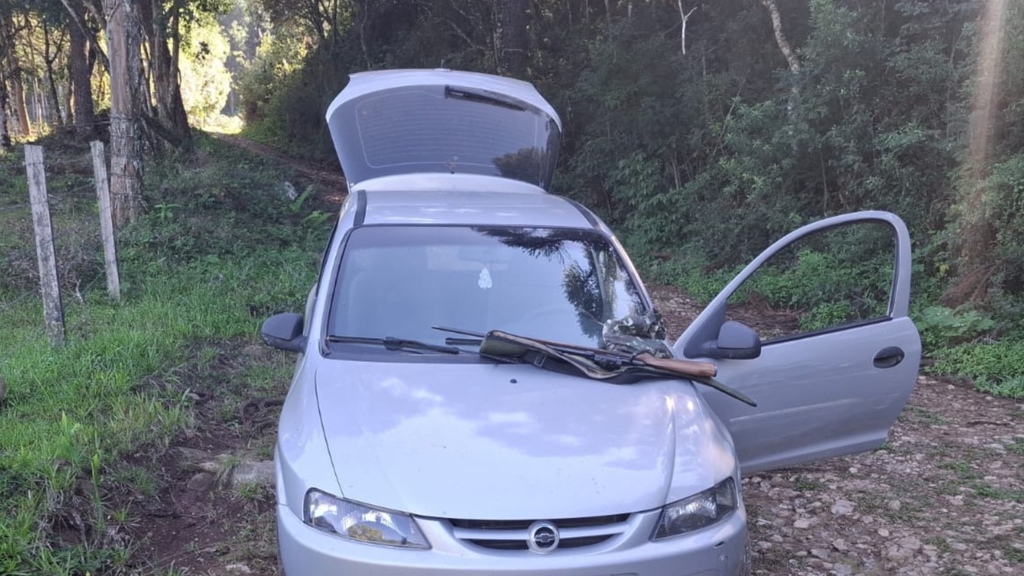 Durante operação de combate à caça ilegal, os policiais abordaram um veículo estacionado em frente a uma propriedade rural. No local, o proprietário do veículo e do terreno foi localizado em um galpão.